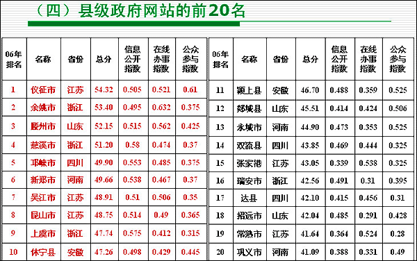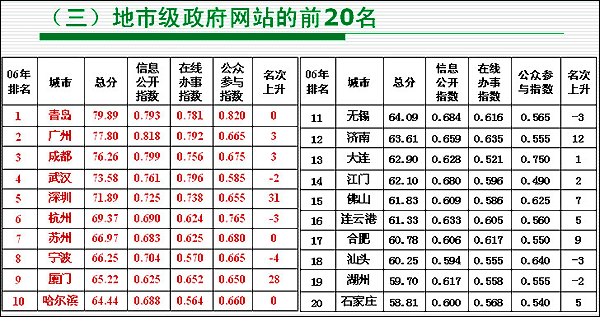 2006年,中國(guó)電子政務(wù)建設(shè),特別是門戶網(wǎng)站建設(shè)取得了長(zhǎng)足的發(fā)展。政府網(wǎng)站擁有率穩(wěn)步提高,部委96.1%,省級(jí)96.9%,地市級(jí)96.7%,縣級(jí)87.1%,總體85.6%,比上年有所增長(zhǎng)。政府網(wǎng)站績(jī)效水平有較大提升。但在取得較大進(jìn)步的同時(shí),我們還應(yīng)該看到,我國(guó)政府網(wǎng)站用戶的認(rèn)知度水平仍然很低,用戶滿意度亟待提高。與已經(jīng)進(jìn)入服務(wù)導(dǎo)向階段的全球領(lǐng)先的政府網(wǎng)站相比,中國(guó)的政府網(wǎng)站剛剛進(jìn)入內(nèi)容導(dǎo)向階段,差距尚遠(yuǎn)。 回首過去的是為了理智地認(rèn)知自己,側(cè)目同伴讓我們尋找到差距。此后我們?cè)偻翱矗_下的路會(huì)更加清晰。 |
