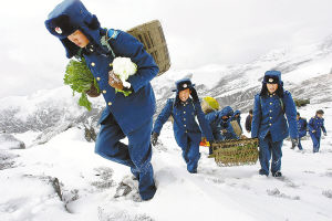 2月11日,戰(zhàn)士們走在為藏東南空軍某雷達(dá)站送年貨的路上。連日來(lái),駐藏空軍部隊(duì)組織專門(mén)力量為所屬雷達(dá)陣地送年貨。