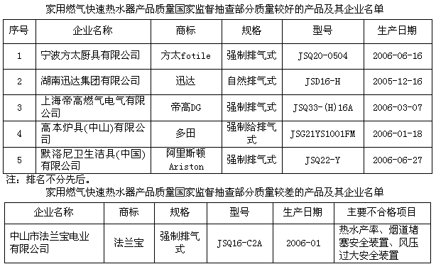 為了保障消費(fèi)者的合法權(quán)益,促進(jìn)家用燃?xì)饪焖贌崴餍袠I(yè)的健康發(fā)展,國家質(zhì)檢總局組織對家用燃?xì)饪焖贌崴鳟a(chǎn)品質(zhì)量進(jìn)行了國家監(jiān)督抽查。共抽查了廣東、上海、江蘇、重慶、浙江、湖南等6個省、直轄市44家企業(yè)生產(chǎn)的44種產(chǎn)品,產(chǎn)品抽樣合格率為88.6%。