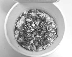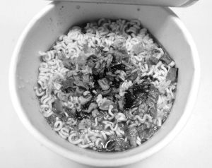 ] 日前,記者在南京部分超市購買了一批不同的方便面,每一碗面包裝上的圖片都非常誘人。隨后,記者用開水沖泡……結(jié)果,鮮明的對比出現(xiàn)了——— 外包裝:菜料十分豐富,不僅有辣白菜,還有一些肉片點(diǎn)綴其間,鋪滿了整個碗面。 泡好實(shí)物:菜料倒確實(shí)能將整個碗面蓋起來,但圖片中的辣白菜和肉片卻不見蹤影,取而代之的是大量的蔥花和幾顆玉米粒。