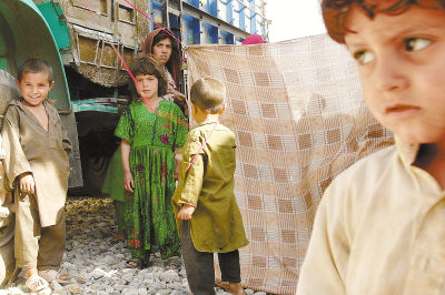 4月14日,在聯(lián)合國(guó)難民事務(wù)高級(jí)專員公署設(shè)在阿富汗首都喀布爾的一個(gè)難民營(yíng),阿富汗兒童好奇地面對(duì)攝影師的鏡頭。難民事務(wù)高級(jí)專員公署最近支持巴基斯坦政府在全國(guó)范圍內(nèi)對(duì)滯留的阿富汗人進(jìn)行普查。據(jù)估計(jì),目前大約210萬(wàn)阿富汗人生活在巴基斯坦,91.5萬(wàn)人生活在伊朗。今年將有25萬(wàn)阿富汗人從這兩個(gè)國(guó)家返回故土。 |