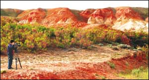 。翟拢玻叭眨藗?cè)谛陆⒗仗┦星袪柨她R鄉(xiāng)發(fā)現(xiàn),一條綿延15公里長(zhǎng)的山脈色彩斑斕,在夕陽的照射下,五彩繽紛,十分壯觀。據(jù)專業(yè)人士介紹,這是典型的雅丹地貌,具有很高的開發(fā)和利用價(jià)值。