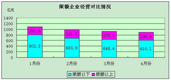 從限額以上住宿與餐飲企業(yè)經(jīng)營情況看,4月份營業(yè)額達到286.4億元,同比增長17.2%。1-4月份合計營業(yè)額1134.4億元,同比增長19.2%,高出全國住宿與餐飲業(yè)零售額增幅1.6個百分點,占全國住宿與餐飲業(yè)零售額的29.2%,其中,限額以上餐飲企業(yè)營業(yè)額605.5億元,同比增長23%;星級住宿企業(yè)營業(yè)額528.9億元,同比增長15%。