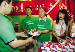 昨天(23日)早晨,天恒大廈里舉行了一場登樓活動,活動后近百名白領享受了一頓美味的肯德基早餐。登樓活動還將在全國十多個城市展開。目前,全國已有80余座城市的千余家肯德基餐廳提供早餐服務,早餐長期產品有16種。