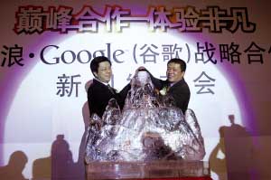 昨天(11日),中國第一門戶網(wǎng)站新浪與全球最大的搜索引擎公司谷歌在北京聯(lián)合宣布達(dá)成戰(zhàn)略合作關(guān)系,雙方將在搜索、廣告、資訊等方面展開合作。其中包括:新浪搜索服務(wù)中將嵌入谷歌網(wǎng)頁搜索框,網(wǎng)民在輸入關(guān)鍵詞之后點(diǎn)擊搜索,網(wǎng)頁將出現(xiàn)由谷歌提供的搜索結(jié)果。