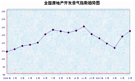 5月份,“國房景氣指數(shù)”為103.32,比4月份上升0.67點(diǎn),同比上升1.45點(diǎn)。