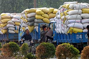 攝 | 記者在江蘇省鹽城市射陽(yáng)縣通洋鎮(zhèn)的國(guó)家糧食儲(chǔ)備庫(kù)前看到,糧庫(kù)前排起了長(zhǎng)長(zhǎng)的農(nóng)用拖拉機(jī)隊(duì)伍,車(chē)上滿載著小麥。一輛輛運(yùn)送小麥前來(lái)銷(xiāo)售的拖拉機(jī)正從四面八方不斷涌來(lái)。在糧庫(kù)大院內(nèi),運(yùn)糧的拖拉機(jī)通過(guò)地磅稱重后駛向四個(gè)不同的小麥倉(cāng)庫(kù),質(zhì)檢人員化驗(yàn)后,小麥即收購(gòu)入倉(cāng)。 剛剛領(lǐng)到賣(mài)糧錢(qián)的通洋鎮(zhèn)大陸村農(nóng)民陳德雨急忙數(shù)起錢(qián)來(lái)。作為糧食經(jīng)紀(jì)人,40歲的陳德雨目前主要是到農(nóng)民家里或田間收購(gòu)小麥,然后運(yùn)到糧庫(kù)銷(xiāo)售,賺取每公斤五六分錢(qián)的差價(jià)!爸饕琴崅(gè)油錢(qián)和辛苦錢(qián)”,陳德雨告訴記者,從農(nóng)民手中收購(gòu)小麥價(jià)格在1.32元/公斤到1.34元/公斤,賣(mài)到糧庫(kù)價(jià)格一般為1.38元/公斤,有時(shí)還要扣除0.5公斤/50公斤的雜質(zhì)和水分,和外出打工收入差不多,主要是能照顧家庭。 正在賣(mài)糧的通洋鎮(zhèn)農(nóng)民樓大偉認(rèn)為,1.38元/公斤的托市收購(gòu)價(jià)比較合理,由于種田免稅,加上糧食補(bǔ)貼20元,農(nóng)民種糧還有一點(diǎn)賺頭。 記者注意到,目前,種糧農(nóng)民親自到糧庫(kù)賣(mài)糧的很少,中青年基本上都外出打工了,家里的老人孩子和婦女沒(méi)有力氣,搬不動(dòng)糧食,糧食收購(gòu)主要靠農(nóng)民經(jīng)紀(jì)人。 今年江蘇省小麥種植面積約3200萬(wàn)畝,總產(chǎn)約110億公斤,較去年略增,又是一個(gè)豐收之年。中國(guó)農(nóng)業(yè)發(fā)展銀行江蘇省分行預(yù)計(jì),全省小麥的商品量約為88億公斤,計(jì)劃投入貸款130億元,較去年增加10億元。 6月1日后,全省各地糧庫(kù)已陸續(xù)開(kāi)門(mén)收購(gòu),價(jià)格按照國(guó)家托市收購(gòu)價(jià)1.38元/公斤至1.44元/公斤進(jìn)行收購(gòu)。 雖然夏糧收購(gòu)目前尚進(jìn)展順利,但一些地方面臨的困難亟需盡快解決,否則將影響夏糧收購(gòu)的進(jìn)度。 一是中儲(chǔ)糧確定的具有資質(zhì)的小麥?zhǔn)召?gòu)企業(yè)和庫(kù)點(diǎn)少。 射陽(yáng)縣糧食局副局長(zhǎng)王少群說(shuō),2006年,中儲(chǔ)糧和農(nóng)發(fā)行在射陽(yáng)全縣確定了17家糧管所和24個(gè)庫(kù)點(diǎn)進(jìn)行收購(gòu),基本上保證了糧食收購(gòu)的正常進(jìn)行。但是今年僅確定了11個(gè)糧管所和15家?guī)禳c(diǎn),好幾個(gè)鄉(xiāng)鎮(zhèn)沒(méi)有收購(gòu)庫(kù)點(diǎn),當(dāng)?shù)剞r(nóng)民將面臨“賣(mài)糧難”問(wèn)題,農(nóng)民意見(jiàn)很大,希望中儲(chǔ)糧能增加收購(gòu)點(diǎn)。 中儲(chǔ)糧在糧食大縣東海縣只確定了17個(gè)庫(kù)點(diǎn),遠(yuǎn)遠(yuǎn)不能滿足農(nóng)民賣(mài)糧需求。糧食局長(zhǎng)劉海波說(shuō),東海已將第二批收購(gòu)點(diǎn)上報(bào)了中儲(chǔ)糧,但至6月14日還沒(méi)有批下來(lái)。 二是庫(kù)容不足,打露天囤亟待中儲(chǔ)糧和農(nóng)發(fā)行盡快批準(zhǔn)。 射陽(yáng)縣種植小麥60萬(wàn)畝,總產(chǎn)在23萬(wàn)噸左右,預(yù)計(jì)收購(gòu)量在18萬(wàn)噸左右,比去年約增加1萬(wàn)噸。但是,目前,全縣糧食庫(kù)容僅有13萬(wàn)噸,由于大部分糧庫(kù)老化,個(gè)別倉(cāng)庫(kù)又存放著其它糧食,全縣庫(kù)容缺口有5萬(wàn)噸左右。東?h雖然倉(cāng)容充足,但許多倉(cāng)庫(kù)老化,儲(chǔ)糧存在質(zhì)量安全的擔(dān)憂。 由于小麥?zhǔn)召?gòu)期緊,緊急收購(gòu)時(shí)間只有十余天,如果一旦因倉(cāng)庫(kù)問(wèn)題而停止收購(gòu),將出現(xiàn)農(nóng)民“賣(mài)糧難”。當(dāng)前射陽(yáng)需要中儲(chǔ)糧和農(nóng)發(fā)行緊急批準(zhǔn)打“露天糧囤”,以解決庫(kù)容不足難題。 三是要盡快提前發(fā)放貸款,防止糧款“斷錢(qián)”引起農(nóng)民“賣(mài)糧難”。 雖然農(nóng)發(fā)行準(zhǔn)備充足,但由于今年夏糧收購(gòu)較往年提早10天左右,而且實(shí)行小麥托市收購(gòu),中儲(chǔ)糧對(duì)收購(gòu)企業(yè)的資格審查十分嚴(yán)格,雖然農(nóng)發(fā)行提前發(fā)放了部分資金,但基層仍表示貸款速度比小麥?zhǔn)召?gòu)進(jìn)度慢,資金緊張。