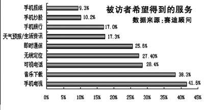 2005年2.5G產(chǎn)品逐漸開始普及,多媒體功能的出現(xiàn)對(duì)手機(jī)服務(wù)的內(nèi)容產(chǎn)生影響。產(chǎn)品的換代革新導(dǎo)致服務(wù)內(nèi)容結(jié)構(gòu)的調(diào)整,因結(jié)構(gòu)性變化而產(chǎn)生消費(fèi)者對(duì)服務(wù)內(nèi)容的需求也不斷升級(jí),當(dāng)目前的服務(wù)內(nèi)容滿足不了消費(fèi)者要求的時(shí)候便導(dǎo)致了服務(wù)滿意率的下降。 2.5G第二代多媒體手機(jī)的出現(xiàn)在產(chǎn)品、技術(shù)等各方面都是一種革命。從一定程度上講,這些多媒體功能都是為了未來3G市場(chǎng)的應(yīng)用做好準(zhǔn)備。因此第三代手機(jī)產(chǎn)品的革命更多是體現(xiàn)在功能的應(yīng)用方面,存儲(chǔ)、傳輸、網(wǎng)絡(luò)、電池等功能的應(yīng)用逐漸顯現(xiàn)作用。因此,當(dāng)3G實(shí)現(xiàn)之后由此而產(chǎn)生的應(yīng)用增值服務(wù)也將增多,對(duì)服務(wù)內(nèi)容的要求也將更為明顯。 而目前手機(jī)服務(wù)的內(nèi)容從硬性的維修服務(wù)到軟性增值服務(wù)的過渡還沒有完成。一些手機(jī)廠商顯然已經(jīng)意識(shí)到內(nèi)容轉(zhuǎn)變的市場(chǎng)時(shí)機(jī),通過更新各自的服務(wù)理念和服務(wù)內(nèi)容,為未來發(fā)展打下基礎(chǔ)。索尼愛立信推行的手機(jī)軟件自主更新服務(wù)、海爾手機(jī)的增值服務(wù)體驗(yàn)中心和諾基亞的手機(jī)博客網(wǎng)絡(luò)服務(wù)都是對(duì)現(xiàn)有服務(wù)的一種延伸。賽迪顧問調(diào)查數(shù)據(jù)顯示,用戶希望得到的服務(wù)中手機(jī)電視和音樂下載的占比最高,分別為41.6%和38.3%。