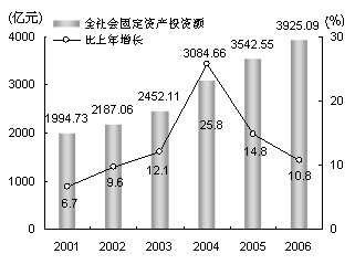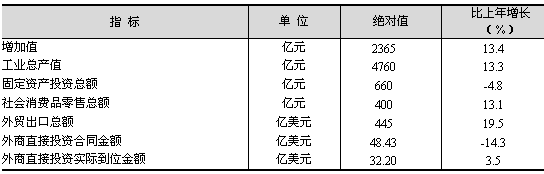 增長19.5%;營業(yè)稅558.67億元,增長8.9%;個(gè)人所得稅131.07億元,增長17.1%;房產(chǎn)稅42.68億元,增長25.1%。全年地方財(cái)政支出1813.8億元,比上年增長9.2%。其中,基本建設(shè)支出395.58億元,增長7.1%;科教文衛(wèi)事業(yè)支出316.12億元,增長13.9%;企業(yè)挖潛改造資金支出251.99億元,增長5.9%。 固定資產(chǎn)投資增幅回落。全年完成全社會(huì)固定資產(chǎn)投資總額3925.09億元,比上年增長10.8%,增幅比上年回落4個(gè)百分點(diǎn)(見圖2)。其中建設(shè)改造投資2246.93億元,增長13.2%。投資結(jié)構(gòu)進(jìn)一步優(yōu)化。從產(chǎn)業(yè)投向看,第一產(chǎn)業(yè)投資14.29億元,比上年增長1.6倍,占全社會(huì)固定資產(chǎn)投資總額的比重為0.4%;第二產(chǎn)業(yè)投資1212.71億元,增長12.1%,所占比重為30.9%;第三產(chǎn)業(yè)投資2698.09億元,增長9.9%,所占比重為68.7%。從投資主體看,國有經(jīng)濟(jì)投資1460.09億元,比上年增長17.7%,占全社會(huì)固定資產(chǎn)投資總額的比重為37.2%;集體經(jīng)濟(jì)投資159.31億元,增長21.6%,所占比重為4.1%;股份制經(jīng)濟(jì)投資910.31億元,下降0.7%,所占比重為23.2%;外商及港澳臺(tái)投資725.85億元,增長13.4%,所占比重為18.5%。