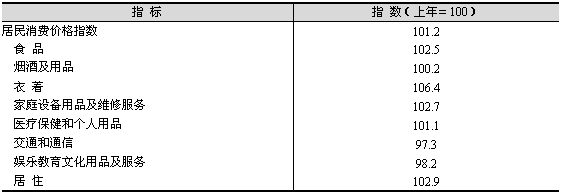 市場價(jià)格保持基本穩(wěn)定。全年居民消費(fèi)價(jià)格總水平比上年上漲1.2%(見表1)。