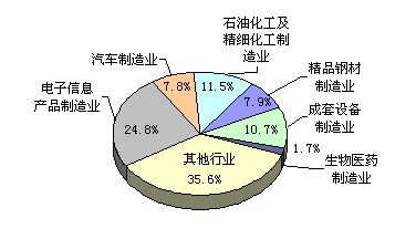 區(qū)縣工業(yè)持續(xù)增長。全市區(qū)縣規(guī)模以上工業(yè)總產(chǎn)值11140.81億元,比上年增長14.7%,占全市規(guī)模以上工業(yè)總產(chǎn)值的比重達(dá)到60.8%。 重點(diǎn)發(fā)展行業(yè)發(fā)展態(tài)勢良好。電子信息產(chǎn)品制造業(yè)、汽車制造業(yè)、石油化工及精細(xì)化工制造業(yè)、精品鋼材制造業(yè)、成套設(shè)備制造業(yè)、生物醫(yī)藥制造業(yè)等六個(gè)重點(diǎn)發(fā)展工業(yè)行業(yè)完成工業(yè)總產(chǎn)值11789.46億元,比上年增長17.9%,占全市規(guī)模以上工業(yè)總產(chǎn)值的比重達(dá)到64.4%(見圖4)。
