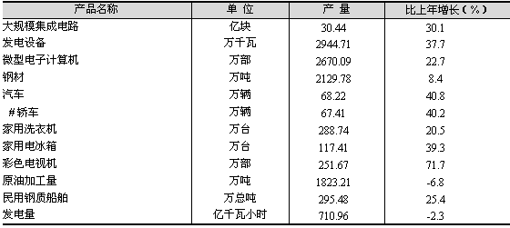 表3 主要工業(yè)產(chǎn)品產(chǎn)量