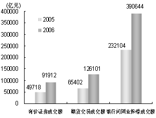 圖7 證券、期貨、銀行間同業(yè)拆借市場成交額