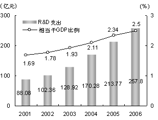 “36條”配套政策及實(shí)施細(xì)則。全年用于研究與試驗(yàn)發(fā)展(R&D)經(jīng)費(fèi)支出257.8億元,相當(dāng)于全市生產(chǎn)總值的比例為2.5%(見圖10)。
