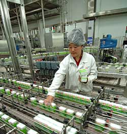 伊利現(xiàn)代化的純牛奶生產(chǎn)線 | 如果把一個(gè)地區(qū)的代表性產(chǎn)品、企業(yè)、行業(yè)看作是它的“名片”,我們?cè)趦?nèi)蒙古自治區(qū)出示的名片上可看到大草原、伊利、羊絨加工等字樣。 近年來(lái),內(nèi)蒙古乳業(yè)在全國(guó)刮起了一陣強(qiáng)勁風(fēng)暴:一個(gè)經(jīng)濟(jì)社會(huì)發(fā)展還都相對(duì)落后的邊疆民族地區(qū),在同一行業(yè)接連出現(xiàn)了兩個(gè)全國(guó)知名品牌、知名企業(yè),其產(chǎn)品銷(xiāo)售覆蓋全國(guó)市場(chǎng),被國(guó)人譽(yù)為內(nèi)蒙古的“兩頭牛”經(jīng)濟(jì)現(xiàn)象。