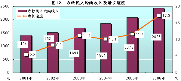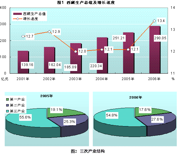 2006年,是“十一五”計劃的開局之年。全區(qū)各族人民在自治區(qū)黨委和自治區(qū)人民政府的堅強領導下,以鄧小平理論和“三個代表”重要思想為指導,以科學發(fā)展觀統(tǒng)領經(jīng)濟社會發(fā)展的全局,緊緊圍繞新時期西藏工作指導方針,全面實施“一產(chǎn)上水平、二產(chǎn)抓重點、三產(chǎn)大發(fā)展”的經(jīng)濟發(fā)展戰(zhàn)略,實現(xiàn)了國民經(jīng)濟又好又快的發(fā)展,各項社會事業(yè)全面進步,城鄉(xiāng)居民生活繼續(xù)改善,“十一五”開局良好。