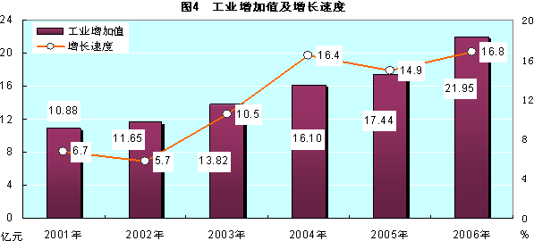 初步核算,2006年實現(xiàn)全區(qū)生產(chǎn)總值(GDP)290.05億元,按可比價格計算,比上年增長13.4%。其中:第一產(chǎn)業(yè)增加值51.04億元,增長6.2%;第二產(chǎn)業(yè)增加值80.03億元,增長22.9%;第三產(chǎn)業(yè)增加值158.98億元,增長11.7%。人均GDP達到10396元,增長11.9%。 在全區(qū)生產(chǎn)總值中,第一、二、三產(chǎn)業(yè)增加值比重分別為17.6%、27.6%、54.8%,與上年相比,第一產(chǎn)業(yè)所占比重比上年下降1.5個百分點,第二產(chǎn)業(yè)提高2.3個百分點,第三產(chǎn)業(yè)下降0.8個百分點。
