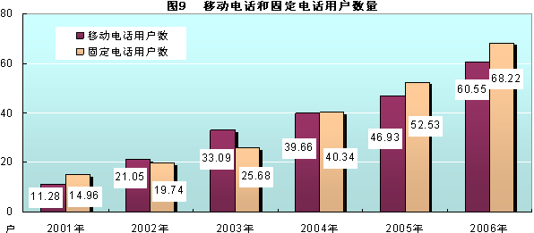 用戶3.25萬戶。新增移動電話交換機14.00萬門,總容量達80.00萬門。新增移動電話用戶13.62萬戶,達到了60.55萬戶。年末全區(qū)固定及移動電話用戶總數(shù)達到128.77萬戶,比上年末增加29.29萬戶。電話普及率達到46.5部/百人。
