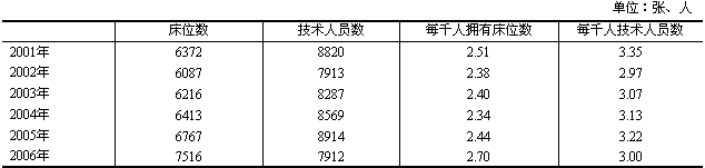 表3 衛(wèi)生機構床位數(shù)和技術人員數(shù)