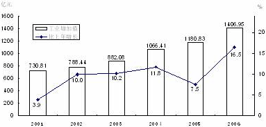 2001-2006年工業(yè)增加值及其增長速度
