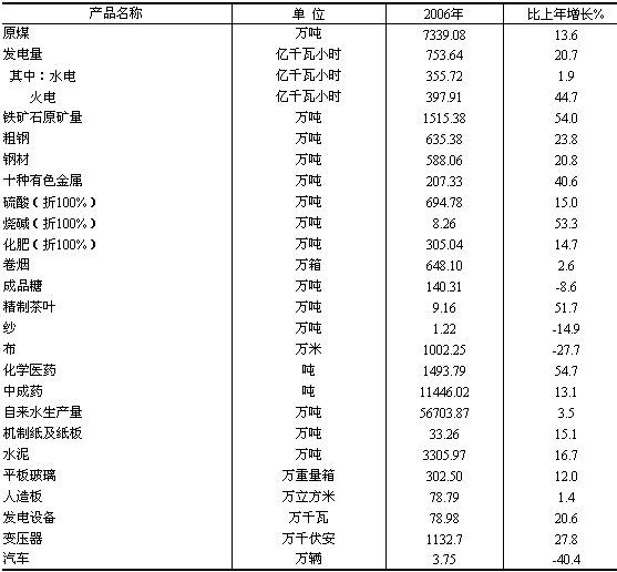2006年主要工業(yè)產(chǎn)品產(chǎn)量及其增長速度