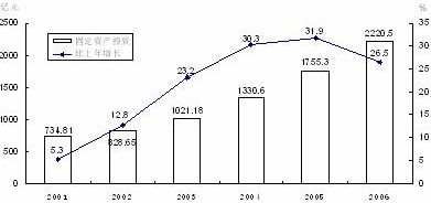 2001-2006年全社會(huì)固定資產(chǎn)投資及其增長速度