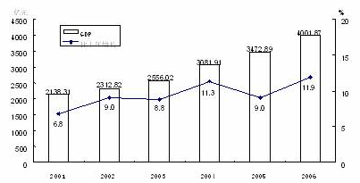 圖1 2001-2006年生產(chǎn)總值及其增長速度
