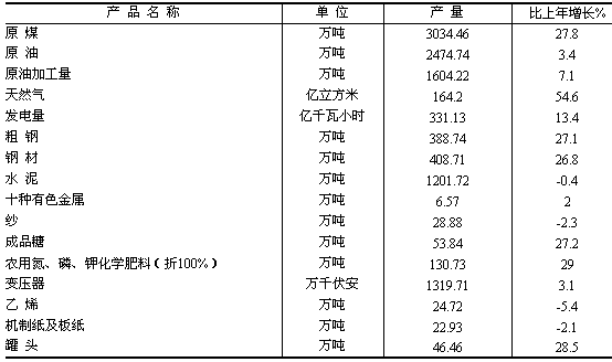 表5:2006年規(guī)模以上工業(yè)主要產(chǎn)品產(chǎn)量