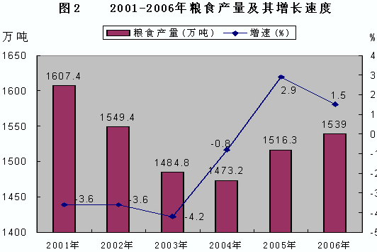 表2 2006年主要農產品產量及其增長速度