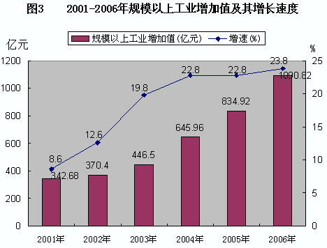表3 2006年規(guī)模以上工業(yè)增加值及其增長速度
