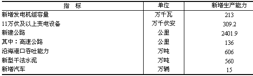 表7 2006年固定資產投資新增主要生產能力