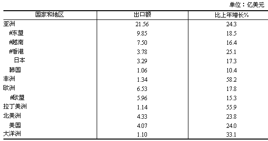 表9 2006年對主要國家和地區(qū)出口情況