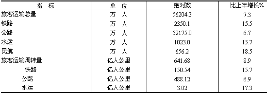 表11 2006年各種運輸方式完成旅客運輸量及其增長速度
