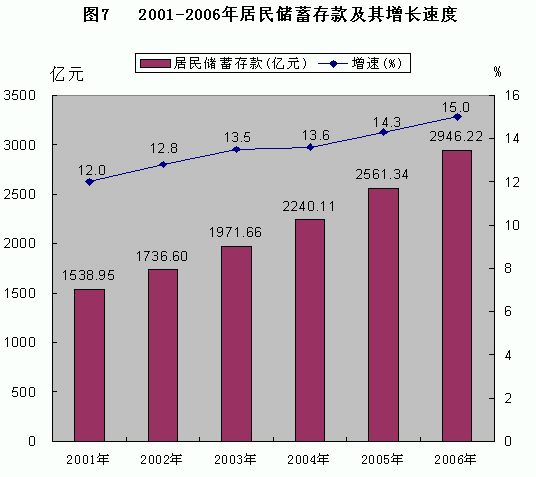 表12 2006年全部金融機構存貸款及其增長速度