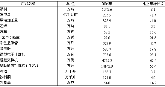 表6:主要工業(yè)產(chǎn)品產(chǎn)量