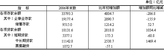 金融:年末全市金融機(jī)構(gòu)(含外資)本外幣存款余額33793.3億元,比年初增加4804.7億元,同比少增286.8億元;其中人民幣存款余額31313.8億元,比年初增加4511億元,同比少增552.5億元。金融機(jī)構(gòu)(含外資)本外幣貸款余額18131.6億元,比年初增加2818億元,同比多增1034.4億元;其中人民幣貸款余額15632.7億元,比年初增加1820億元,同比多增561.6億元。