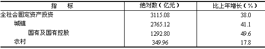 全省全社會固定資產(chǎn)投資3115.08億元,比上年增長38.0%,其中,城鎮(zhèn)投資增長41.1%,農(nóng)村投資增長17.8%(見表5)。