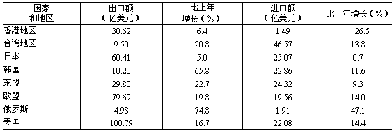 表7:2006年對主要國家和地區(qū)進(jìn)出口情況