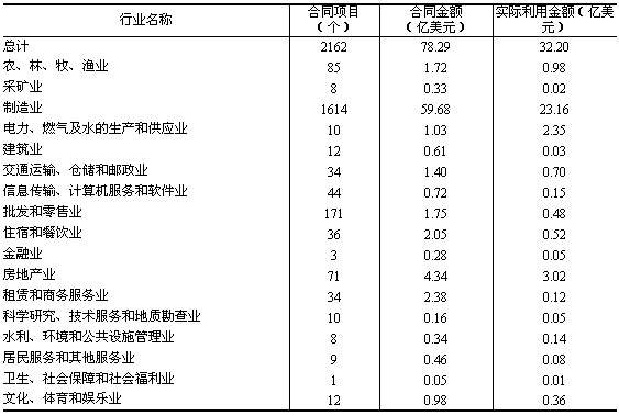 表8:2006年外商直接投資分行業(yè)情況(驗(yàn)資口徑)