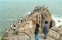 在中韓兩國建交前后的幾年中,山東半島日益受到韓國商家的青睞。榮成市成山頭是韓國人最喜歡游覽的地方。新華社記者:吳增祥
