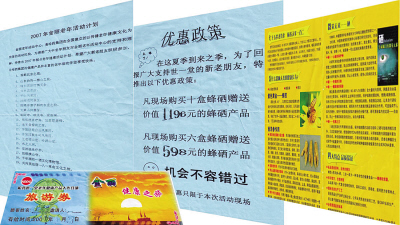 眼下,落戶城市從事現(xiàn)場(chǎng)賣藥的各類公司大有蔓延之勢(shì)。在大連一地,僅哈醫(yī)藥金麗公司就自稱設(shè)立了12家分公司,專門從事“面向中老年人群的醫(yī)藥保健品銷售服務(wù)”!妒袌(chǎng)報(bào)》記者在一份署名“哈醫(yī)藥集團(tuán)世一堂華納醫(yī)藥有限責(zé)任公司”的“蜂硒軟膠囊”宣傳單中看到,廠家竟然把這種保健食品內(nèi)含的西洋參的作用宣傳成“適用于心律失常、冠心病、急性心肌梗塞、腦血栓、冠狀動(dòng)脈搭橋手術(shù)等癥,適用于高血脂動(dòng)脈粥樣硬化、老年病、糖尿病等癥,適用于老年病、性機(jī)能低下、貧血和癌癥等……” 一些騙子專門打著“國(guó)家著名專家”、“國(guó)家著名醫(yī)藥企業(yè)”、“國(guó)家著名醫(yī)院”的招牌,宣傳、介紹新療法、新藥品。哈醫(yī)藥集團(tuán)世一堂華納有限公司在其“蜂硒軟膠囊”宣傳單中有這樣一段文字:“2003年,中國(guó)疾病預(yù)防控制中心際君石研究員宣布,在各種具有免疫調(diào)節(jié)功能的營(yíng)養(yǎng)素(包括維生素C、維生素E、維生素A、鋅、鎂等)中,硒是唯一可以直接抗病毒的營(yíng)養(yǎng)素”。這個(gè)宣傳違反了“藥品及保健品廣告的宣傳內(nèi)容不得利用國(guó)家機(jī)關(guān)、醫(yī)藥科研單位、學(xué)術(shù)機(jī)構(gòu)或者專家、學(xué)者、公眾人物、醫(yī)師、患者的名義和形象作證明”的規(guī)定。 所謂“專家宣布”是否真實(shí)有效?《市場(chǎng)報(bào)》記者就此問(wèn)題專門致電中國(guó)疾病預(yù)防控制中心。聽(tīng)了記者的介紹,這個(gè)中心營(yíng)養(yǎng)與食品安全部(室)的一位專家感到驚愕,她告訴記者,中國(guó)疾病預(yù)防控制中心并沒(méi)有姓“際”的研究員,而且,一位叫“陳君石”的研究員已經(jīng)在幾年前就退休了。她出言謹(jǐn)慎,“我沒(méi)有聽(tīng)到這樣的事情。并且,中國(guó)疾病預(yù)防控制中心沒(méi)有義務(wù)‘宣布’這樣一些與自己的法定職能不相稱的信息!庇浾咴噲D聯(lián)系那位叫“陳君石”的研究員,可是不知何故,他的電話一直沒(méi)有人接。一位化學(xué)專家指出,人體內(nèi)有幾十種微量元素,硒作為人體內(nèi)已知的微量元素之一,與其它元素協(xié)同作用,有益于保持人體的健康平衡,恣意夸大某種人體內(nèi)的微量元素的作用,強(qiáng)補(bǔ)某種微量元素,只是商家的炒作,并不利于人體的健康。 有意夸大功效,胡亂捏造概念,唬人的招牌——成為這些藥品直銷活動(dòng)的共性。