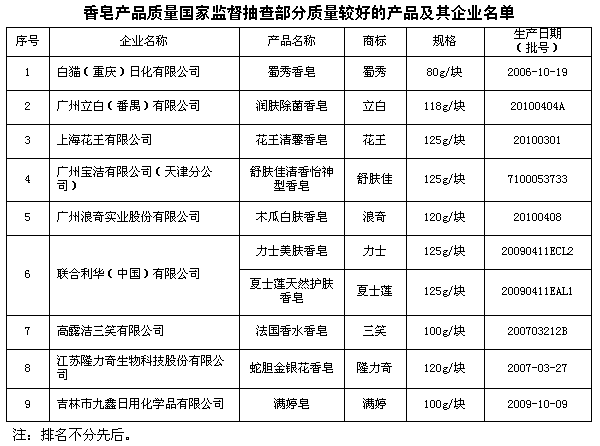 為了維護消費者的合法權(quán)益,促進香皂行業(yè)健康發(fā)展,國家質(zhì)檢總局組織對香皂產(chǎn)品質(zhì)量進行了國家監(jiān)督抽查,共抽查了北京、天津、吉林、上海、江蘇、安徽、浙江、湖南、湖北、河南、山東、廣東、貴州、廣西、重慶等15個省、直轄市、自治區(qū)32家企業(yè)生產(chǎn)的50種產(chǎn)品(不涉及出口產(chǎn)品),產(chǎn)品實物質(zhì)量合格率為96%。