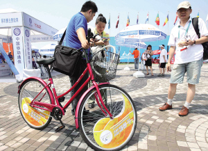 昨天(8日),“好運(yùn)北京”2007賽艇世青賽賽場組委會(huì)為運(yùn)動(dòng)員、教練員和賽場工作人員準(zhǔn)備了場內(nèi)環(huán)保自行車。