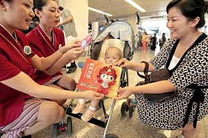南航北京分公司昨天(8日)宣布,“五彩中國-南航行”北京站活動正式啟動。從8月8日至今年年底,南航北京-廣州、深圳,北京-?凇⑷齺喭岛骄機票實施“一票通”。 凡旅客購買8折(含)以上散客客票,在廣州至北京、深圳至北京、北京至廣州、北京至深圳單程或往返程航線,可將始發(fā)地或目的地的廣州和深圳進行互換;凡旅客購買5折(含)以上散客客票,在?谥帘本、三亞至北京、北京至海口、北京至三亞單程或往返程航線,可將始發(fā)地或目的地的?诤腿齺嗊M行互換。航班互換不收取任何更改費用。 圖為南航工作人員在首都機場向旅客送上“福娃”禮品。 | |