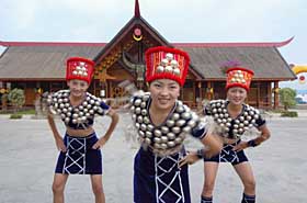 景頗族姑娘開(kāi)山門迎客。 |