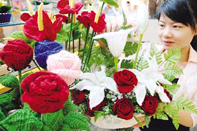 含苞的玫瑰、亮麗的菊花、盛開的百合、雍容的牡丹……這些栩栩如生的花卉并非常見的水晶花、塑料花、紙花,而是由江蘇淮安市清河區(qū)幾十名下崗女工用毛線手工編織而成。五彩斑斕的毛線花卉、盆景在南京的時尚商鋪剛一面市就受到不少年輕人的青睞。