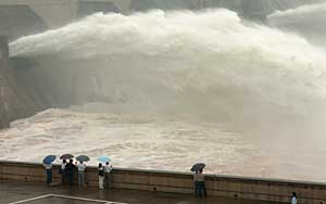 黃河小浪底調(diào)水調(diào)沙的壯觀風(fēng)景。攝影/本報記者 趙鵬