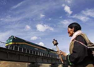 青藏鐵路全線運營一年來,西藏運用科學(xué)發(fā)展觀,著力管好用好鐵路,培育新的經(jīng)濟增長點。同時,制定了“一產(chǎn)上水平,二產(chǎn)抓重點,三產(chǎn)大發(fā)展”的目標(biāo),經(jīng)濟格局由供給型向市場型轉(zhuǎn)變,火車成為經(jīng)濟發(fā)展“助推器”。