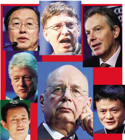 達(dá)沃斯風(fēng)云人物 左上:中國人民銀行行長周小川 左中:美國前總統(tǒng)克林頓 左下:經(jīng)濟學(xué)家樊剛 中上:微軟總裁比爾·蓋茨 中下:世界經(jīng)濟論壇主席、創(chuàng)始人施瓦布 右上:英國前首相布萊爾 右下:阿里巴巴CEO馬云 兩次參加世界經(jīng)濟論壇在中國舉辦的中國企業(yè)高峰會,也參加過香港的《財富》全球論壇,今天回憶起來,感受最深的是我參與并見證了一個個預(yù)言的實現(xiàn),見證了中國影響力的持續(xù)提升。許多著名國際會議選址中國,讓人欣喜地看到,中國正越來越積極主動地參與世界經(jīng)濟。幾天后,世界經(jīng)濟巨頭將聚集大連,研究作為新興市場的中國的潛力和成長性。值此之際,我們推出“特別策劃——聚焦大連夏季達(dá)沃斯”,旨在解讀中國經(jīng)濟的持續(xù)影響力及對未來商機的預(yù)見。 ——編者