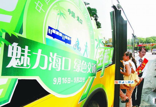 9月16日,在?谑旋埲A路,一位媒體記者準備乘坐?谑着_到歐Ⅲ標準的公交大巴車,體驗公交的運行、服務。當天,2007首屆中國(?冢┏鞘泄步煌ㄖ芗盁o車日活動在市人大會堂正式啟動,市交通局安排簽名儀式、自行車巡游等活動,并且邀請了有關領導、人大和政協(xié)代表、媒體記者乘坐公交車進行體驗。